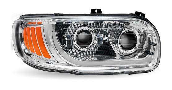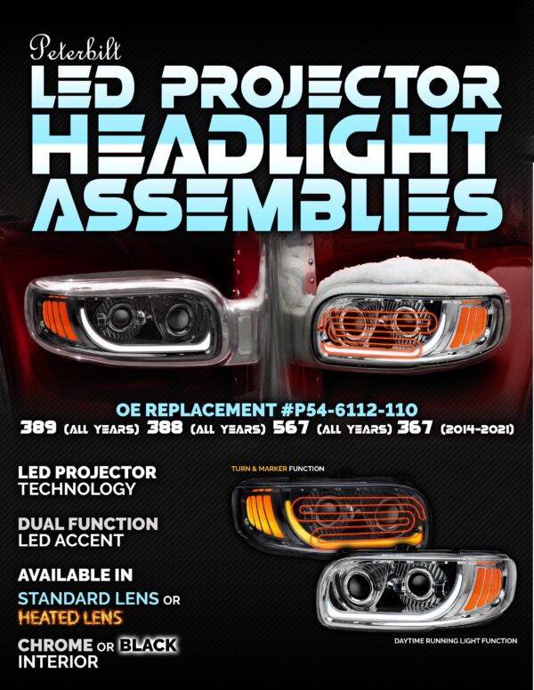 The Heated LED Headlight with Chrome Interior is a practical and reliable lighting solution for your vehicle. This headlight is designed to fit Peterbilt models 389, 388, 567 and 2014-2021 of the 567. It meets DOT SAE HL-09 compliance and FMVSS-108 and CMVSS-108 standards, ensuring safety and reliability. The projector technology provides a wider beam, while the “Quick Heat” technology activates the heating elements at 5 Celsius (41 Fahrenheit). With a dual function LED accent and a “plug and play” installation, this headlight offers convenience and ease of use. Sold individually with a 3-year warranty, it is a durable and efficient choice for your vehicle.